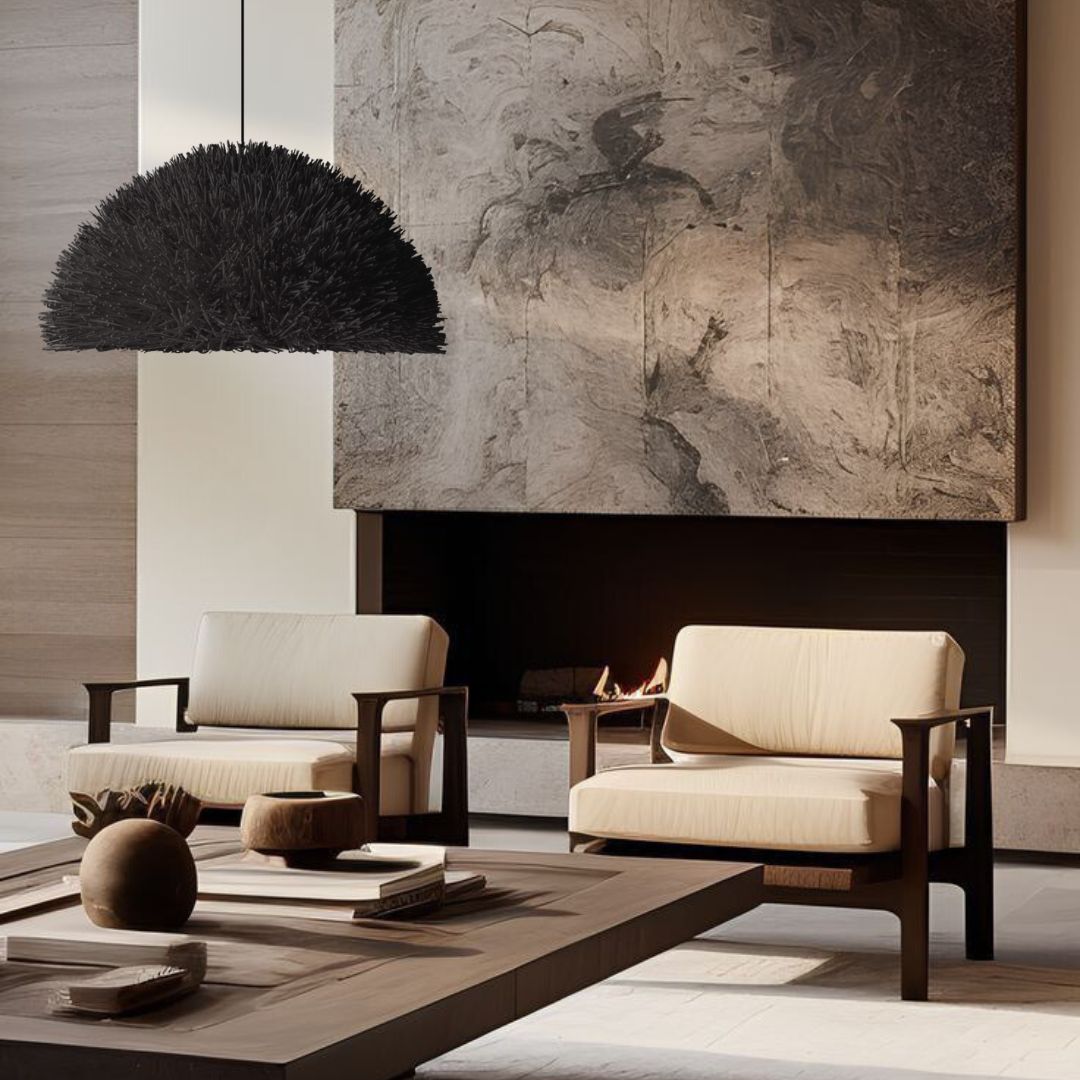 La lámpara PUYA transmite su personalidad propia con su diseño inspirado en la forma orgánica de espigas y tallos, creando un ambiente acogedor y rústico.