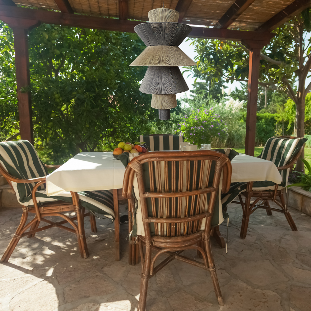 Para limpiar la lámpara, eliminar primero el polvo que se acumula en las fibras. Utilizar un trapo para frotar delicadamente la zona y secarla dejandola al aire libre evitando la exposición directa al sol o lluvia.